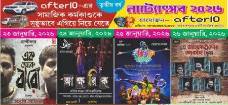 After 10 Drama Festival 2026: Igniting Change Through Art and Awareness From January 23rd to 26th, 2026, our NGO after 10 transformed New Barrackpore KristiAuditorium into a vibrant stage for social awakening. Under the banner of "Art for Empowerment," this four-day drama festival showcased powerful performances by renowned theatre groups, drawing packed audiences eager to celebrate stories of resilience, justice, and humanity. Our motto—"Empowering the Underprivileged, One Step at a Time"—shines through every initiative, and this event was a heartfelt extension of that mission: raising vital funds while spreading awareness about our life-changing programs. The festival spotlighted our ongoing social activities, including: Fair-price ambulance and hearse van services, ensuring dignified support during life's toughest moments. Dishari, our free education program from Class V to X for underprivileged children, fostering dreams and futures. Free doctor consultations and medicine distribution, bringing healthcare to those who need it most. Free sanitary napkin distribution for Dishari students, promoting health and dignity. Free dress distribution to underprivileged children during Durga Puja, spreading joy and equality. Each evening pulsed with emotion and inspiration: January 23rd: "Ek Theke Baro" by Nandikar – A riveting exploration of collective strength, captivating hearts from the first scene. January 24th: "Akhhorik" by Aneek – A poignant tale of unspoken struggles, leaving audiences in reflective silence. January 25th: "Hibijibi Bahini" by Chetana – Bursting with energy, this play celebrated sisterhood and defiance against odds. January 26th: "Je Janla Gulor Akash Chilo" by Ichhemoto – A soul-stirring finale on lost skies and reclaimed hopes, ending on a high note of hope. Thanks to the generosity of attendees, performers, and supporters, the festival not only boosted funds for our programs but also amplified After 10's reach across society. Join us in this journey—your support turns stories on stage into real-world transformations.